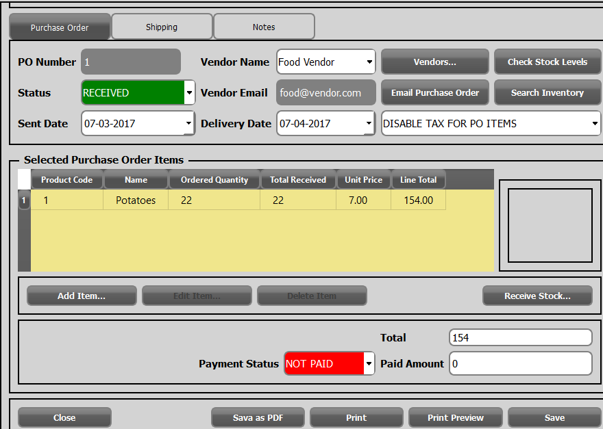 DRAFT: Initially when you create a purchase order. Add items to the order list and set other parameters. You can add any special notes.