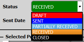 RECEIVED: Change to this state when the items have been received from the vendor. System will prompt you to export received items to inventory. Please make sure to complete inventory data.