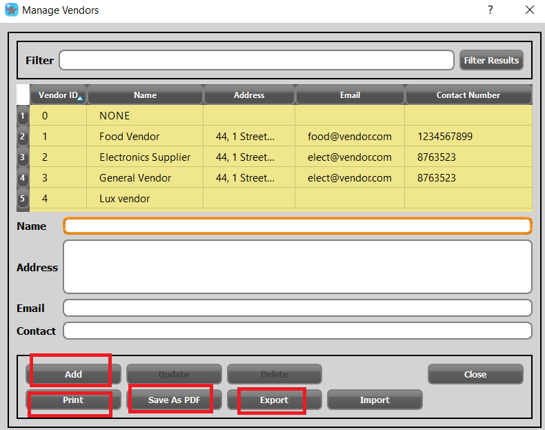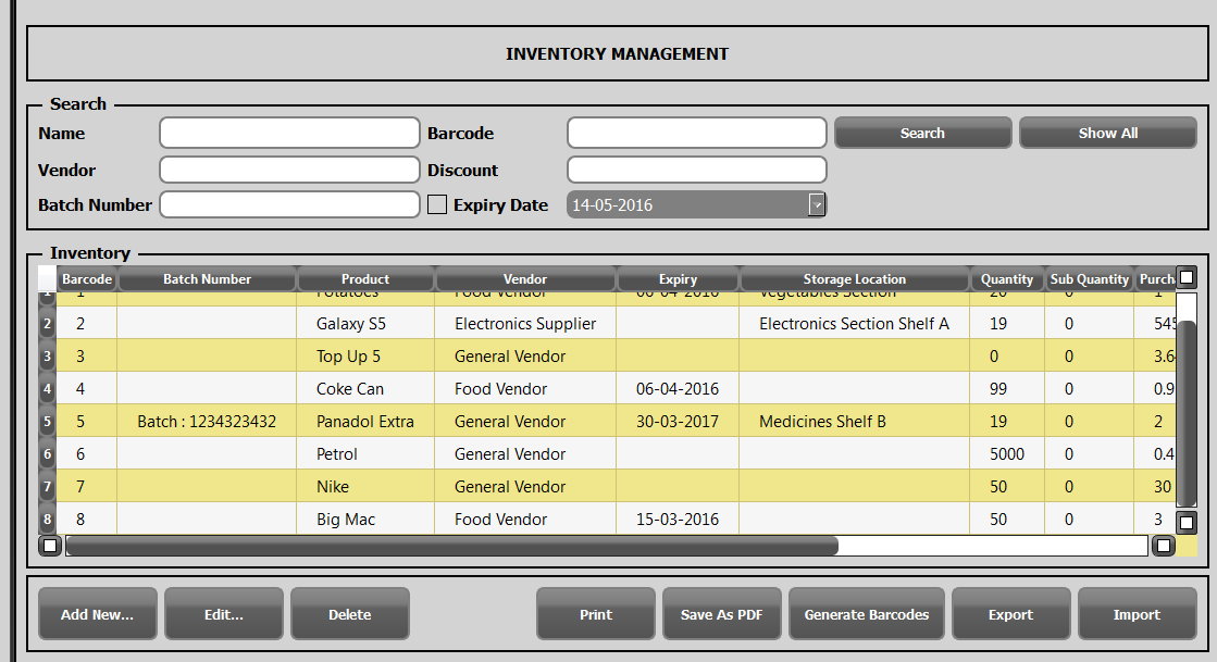 Vendor: You would have to associate vendor from the available list with this stock. You can also add new vendors in the system by clicking on button next to Vendor list.