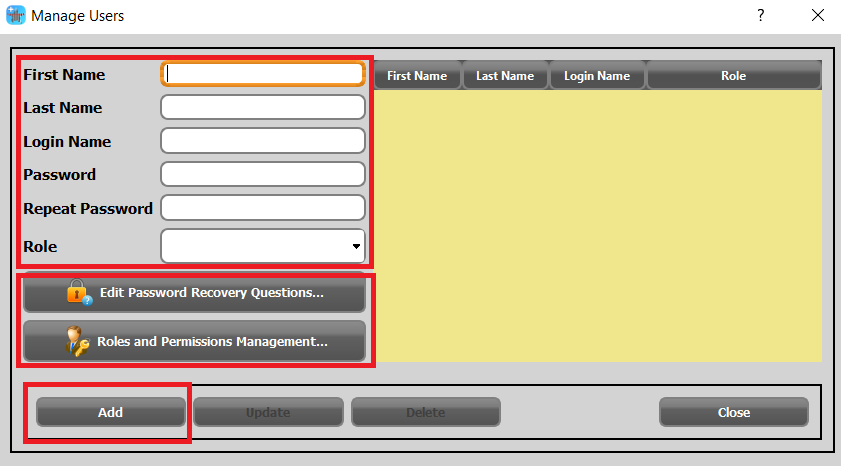Deleting Item: Select the item to be deleted by clicking on the table row. After the item has been selected, press the button “Delete Item”. This will remove the item from the list and add it back to the inventory and the due amount will be adjusted accordingly.