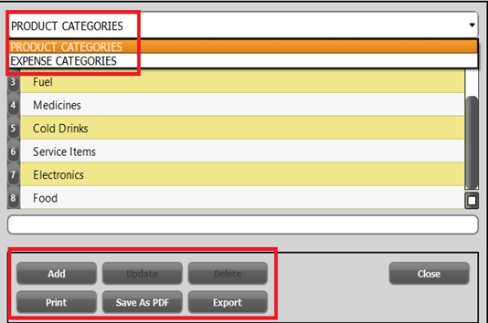 PRINT: Print button will print the receipt or invoice depending upon the mode selected. It will print to PDF if you have set the printer to PDF Printer under printing settings. Similarly it will print in small or large size depending upon the selection of printing format under printing settings.
