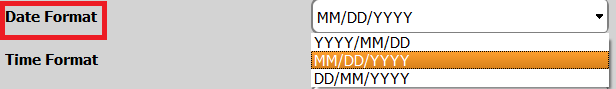 Date Format: You can select the appropriate date format according to your requirements as shown in the following screenshot: