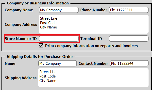 Print Company Information and Logo: There are two check boxes, if checked then company information and logo will be printed on receipts, reports and purchase orders as shown in the following screenshot: